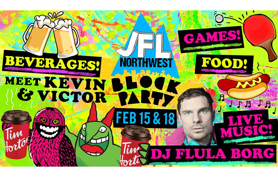 Running on February 15th from 5pm-10pm, and on February 18th from 5-8pm, JFL NorthWest Block Party patrons will be entertained by various Just For Laughs classic TV stand-up specials, presented by Tim Hortons.